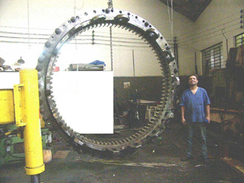 Engrenagens, Coroa, Pinhão, Eixos, Redutores Industriais, Redutores de esteira e roda para linha de caminhões fora de estrada e máquinas agrícola, Rolamento de britador, Pino Lock, pontas de eixo, peças especiais conforme desenho ou amostra, e serviços gerais de torno (até 4 mts. De diâmetro), freza e centro de usinagem.